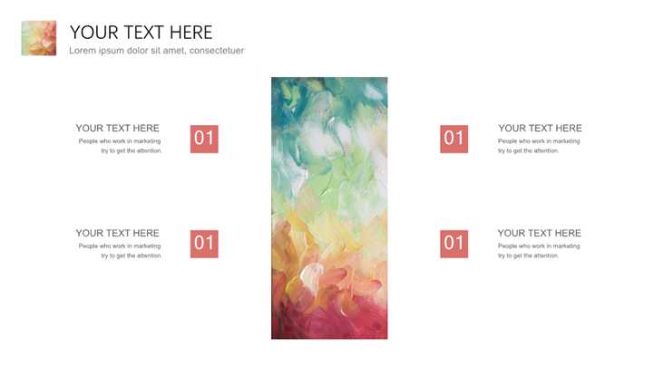 PPT简介: 抽象艺术色彩心理学课件ppt模板,彩色为主色调,整体界面艺术风格,适用于心理学课件、心理学教学、心理咨询等相关主题设计应用。主体文字及图片可替换修改,文字修改均可直接点击文本框进行编辑,图片更改可选中图片后单击鼠标右键插入更换图片,也可根据自身需求增加和删除。本作品提供PPTX格式文件,转载请注明出处!