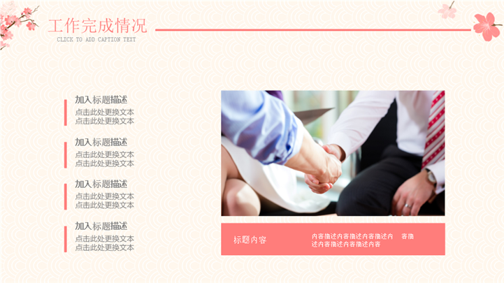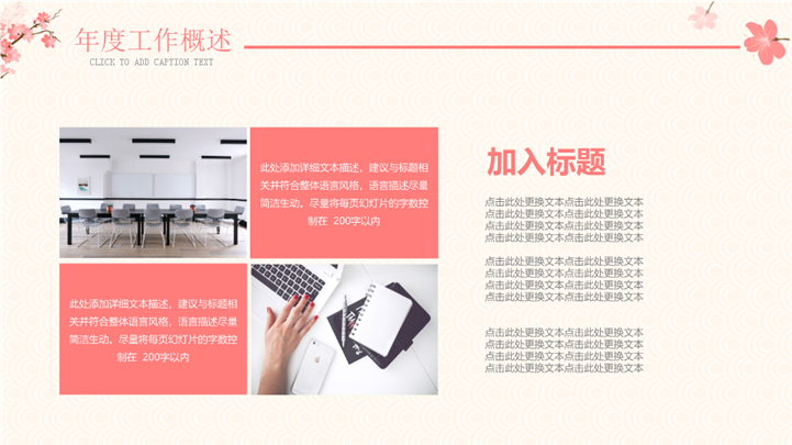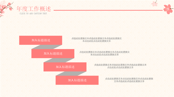 PPT简介: 日系文艺风年度工作述职汇报ppt模板,橘色为主色调,整体界面日系文艺风格,主要包含年度工作概述、工程完成情况、成功项目展示、明年工作计划等模块内容,适用于年度工作总结、年终工作总结、年终总结、年末总结、工作总结计划、年度工作计划、工作计划、商务计划、工作总结计划、工作目标、工作目标计划、下步工作计划、工作复盘、月度总结、月度复盘、计划总结、商务总结、工作总结、总结汇报、商务汇报等相关主题设计应用。主体文字及图片可替换修改,文字修改均可直接点击文本框进行编辑,图片更改可选中图片后单击鼠标右键插入更换图片,也可根据自身需求增加和删除。本作品提供PPTX格式文件,转载请注明出处!