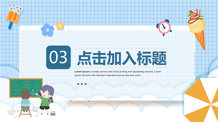 PPT简介: 卡通风格儿童教育课程教育培训ppt模板,浅蓝色为主色调,整体界面可爱卡通风格,适用于教育培训课件、课程开发、讲师培训、学校教育、教学分析、教学设计、教学说课、教学方案、公开课、教师公开课、公开课课件等相关主题设计应用。主体文字及图片可替换修改,文字修改均可直接点击文本框进行编辑,图片更改可选中图片后单击鼠标右键插入更换图片,也可根据自身需求增加和删除。本作品提供PPTX格式文件,转载请注明出处!