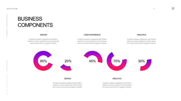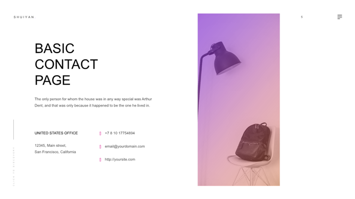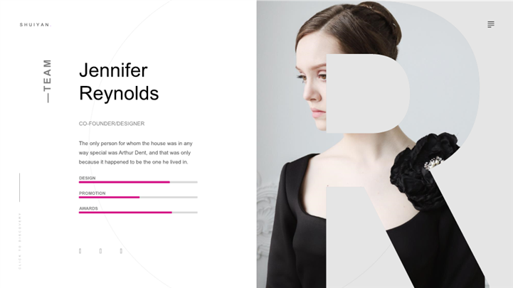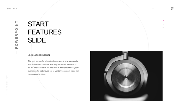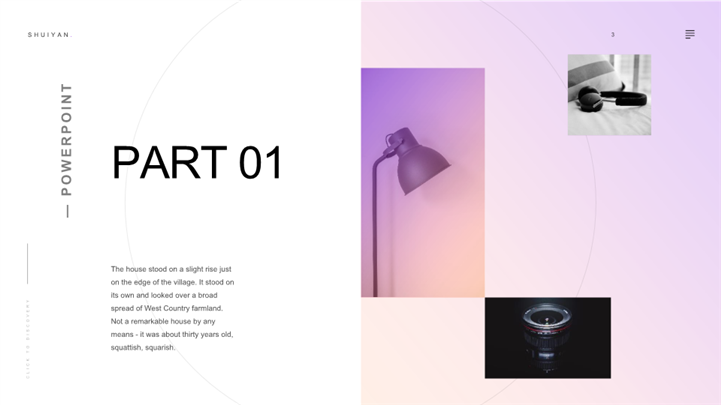 PPT简介: 抽象艺术时尚产品展示ppt模板,紫渐变为主色调,整体界面艺术风格,适用于品牌介绍、产品展示、营销策略、产品介绍、产品宣传、产品研发等相关主题设计应用。主体文字及图片可替换修改,文字修改均可直接点击文本框进行编辑,图片更改可选中图片后单击鼠标右键插入更换图片,也可根据自身需求增加和删除。本作品提供PPTX格式文件,转载请注明出处!