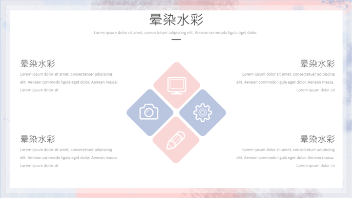 PPT简介: 时尚晕染水彩工作总结汇报ppt模板,淡紫色、淡粉色搭配为主,整体界面时尚晕染风格,适用于工作复盘、月度总结、月度复盘、计划总结、商务总结、工作总结、总结汇报、商务汇报等相关主题设计应用。主体文字及图片可替换修改,文字修改均可直接点击文本框进行编辑,图片更改可选中图片后单击鼠标右键插入更换图片,也可根据自身需求增加和删除。本作品提供PPTX格式文件,转载请注明出处!