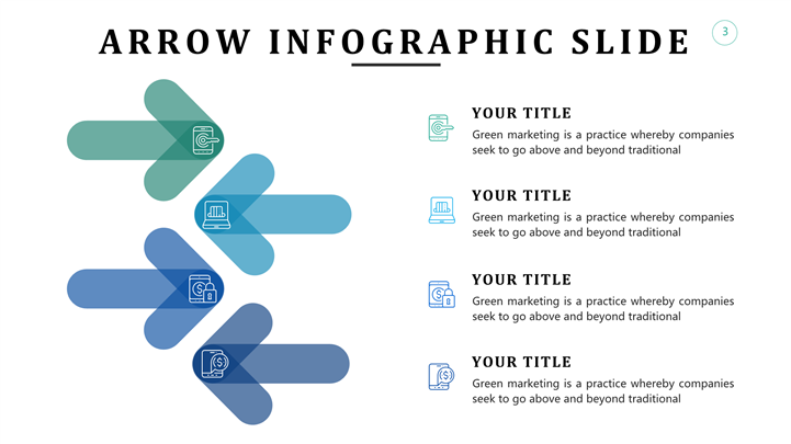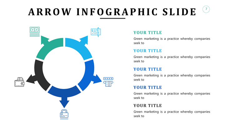 PPT简介: 简洁商务演示项目汇报箭头信息ppt图表,蓝绿色为主色调,整体界面简洁商务风格,适用于展示数据比例、突出视觉效果、表现数据统计、加工形状美化、整合其他图表等相关主题设计应用。主体文字及图片可替换修改,文字修改均可直接点击文本框进行编辑,图片更改可选中图片后单击鼠标右键插入更换图片,也可根据自身需求增加和删除。本作品提供PPTX格式文件,转载请注明出处!