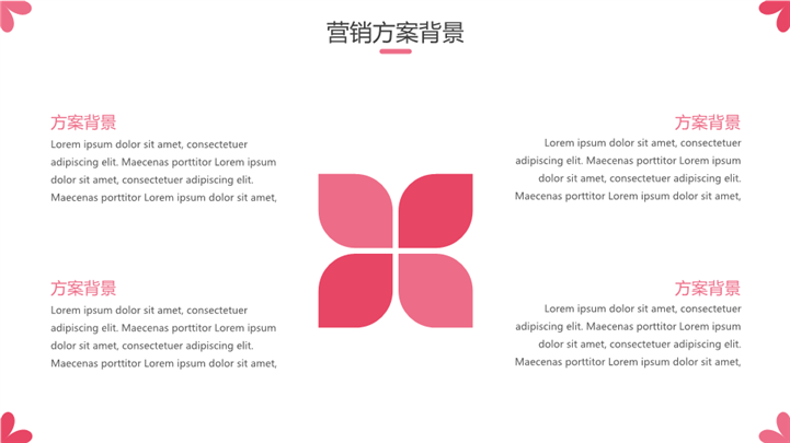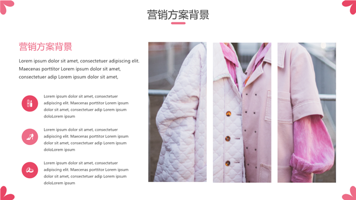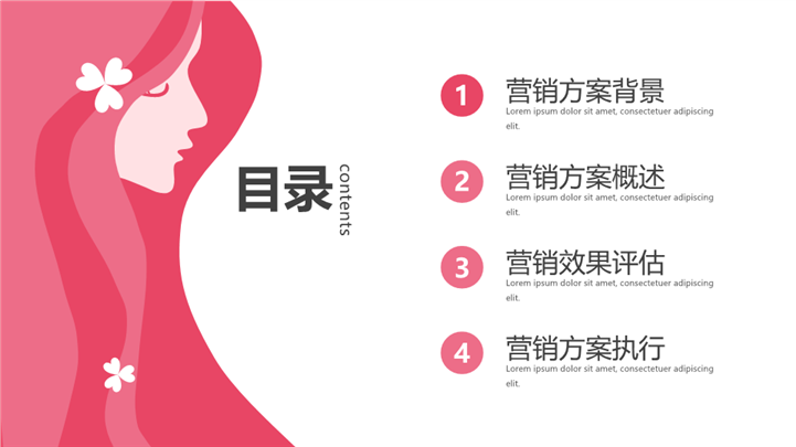 PPT简介: 简洁大方女神节营销策划方案ppt模板,粉色为主色调,整体界面简洁大方风格,适用于女生节、37女生节、女生节晚会、大学女生节、感恩母亲、妇女节班会、三八妇女节主题班会、38妇女节、歌颂女性、三八妇女节、女王节、女神节、三八节活动营销、38节活动策划、女王节等相关主题设计应用。主体文字及图片可替换修改,文字修改均可直接点击文本框进行编辑,图片更改可选中图片后单击鼠标右键插入更换图片,也可根据自身需求增加和删除。本作品提供PPTX格式文件,转载请注明出处!