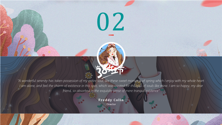 PPT简介: 时尚魅力女性女神节宣传活动ppt模板,青色、红色搭配为主,整体界面插画风格,适用于女生节、37女生节、女生节晚会、大学女生节、感恩母亲、妇女节班会、三八妇女节主题班会、38妇女节、歌颂女性、三八妇女节、女王节、女神节、三八节活动营销、38节活动策划、女王节等相关主题设计应用。主体文字及图片可替换修改,文字修改均可直接点击文本框进行编辑,图片更改可选中图片后单击鼠标右键插入更换图片,也可根据自身需求增加和删除。本作品提供PPTX格式文件,转载请注明出处!