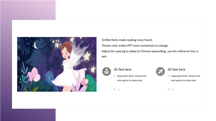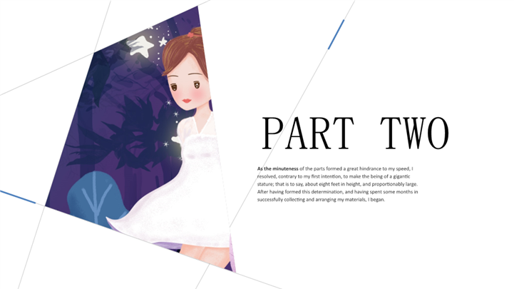 PPT简介: 神秘紫色3.7女生节主题活动ppt模板,紫色为主色调,整体界面插画风格,适用于女生节、37女生节、女生节晚会、大学女生节、感恩母亲、妇女节班会、三八妇女节主题班会、38妇女节、歌颂女性、三八妇女节、女王节、女神节、三八节活动营销、38节活动策划、女王节等相关主题设计应用。主体文字及图片可替换修改,文字修改均可直接点击文本框进行编辑,图片更改可选中图片后单击鼠标右键插入更换图片,也可根据自身需求增加和删除。本作品提供PPTX格式文件,转载请注明出处!