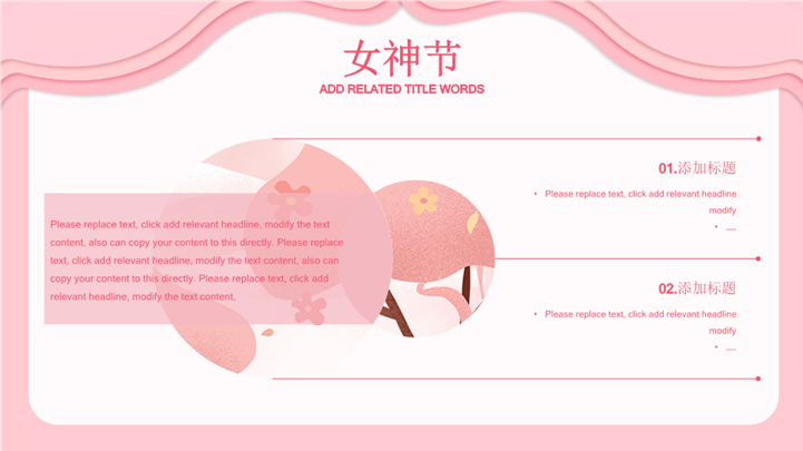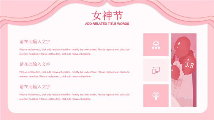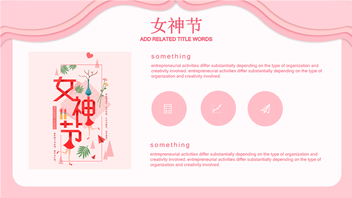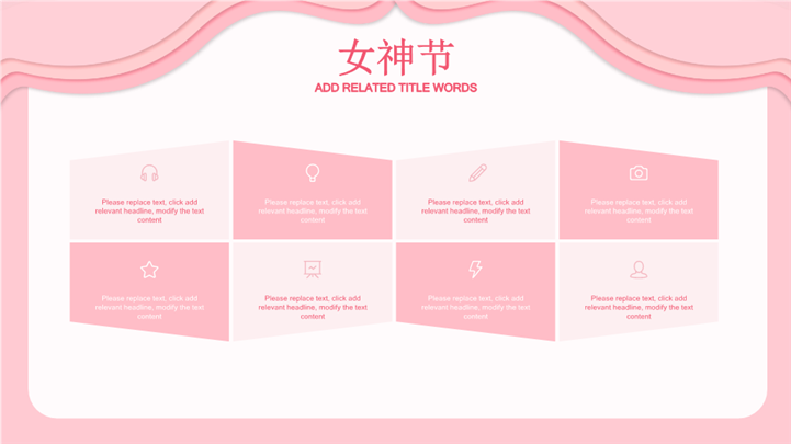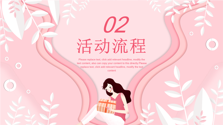 PPT简介: 3.8美丽女神节主题活动策划ppt模板,粉色为主色调,整体界面唯美风格,适用于女生节、37女生节、女生节晚会、大学女生节、感恩母亲、妇女节班会、三八妇女节主题班会、38妇女节、歌颂女性、三八妇女节、女王节、女神节、三八节活动营销、38节活动策划、女王节等相关主题设计应用。主体文字及图片可替换修改,文字修改均可直接点击文本框进行编辑,图片更改可选中图片后单击鼠标右键插入更换图片,也可根据自身需求增加和删除。本作品提供PPTX格式文件,转载请注明出处!