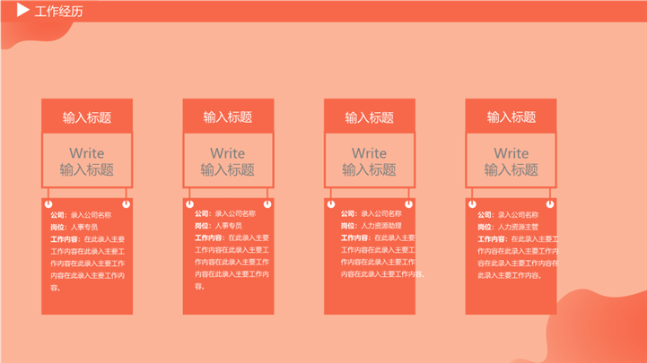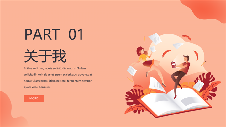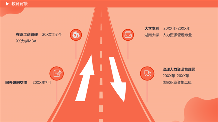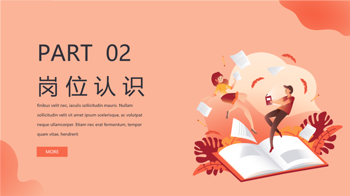 PPT简介: 简约扁平矢量风岗位竞聘ppt模板,浅橘色为主色调,整体界面扁平矢量风格,适用于学生述职、实习转正述职、转正述职、试用期转正述职、商务述职、岗位竞聘、求职竞聘、个人履历、职场规划、晋升述职、述职报告等相关主题设计应用。主体文字及图片可替换修改,文字修改均可直接点击文本框进行编辑,图片更改可选中图片后单击鼠标右键插入更换图片,也可根据自身需求增加和删除。本作品提供PPTX格式文件,转载请注明出处!