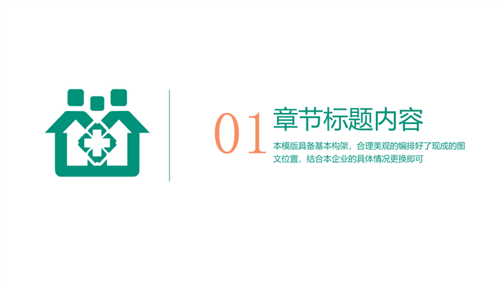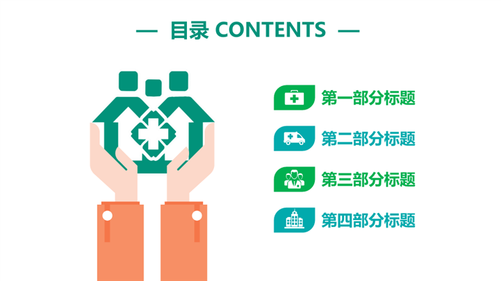 PPT简介: 呵护全家医疗医学项目总结汇报ppt模板,绿色为主色调,整体界面简洁大方风格,适用于病例讨论、医疗、治疗、医学、报告、病例、蓝色医疗、治疗效果、医学报告、医学临床研究等相关主题设计应用。主体文字及图片可替换修改,文字修改均可直接点击文本框进行编辑,图片更改可选中图片后单击鼠标右键插入更换图片,也可根据自身需求增加和删除。本作品提供PPTX格式文件,转载请注明出处!
