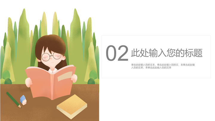 PPT简介: 色彩柔和卡通世界读书日教育班会ppt模板,整体界面卡通风格,适用于读书日宣传、读书日绍、读书日教育课件、世界读书日活动、活动策划报告、宣传与推广资料、教育讲座或研讨会、图书俱乐部会议、图书馆或书店活动、学校阅读项目等相关主题设计应用。主体文字及图片可替换修改,文字修改均可直接点击文本框进行编辑,图片更改可选中图片后单击鼠标右键插入更换图片,也可根据自身需求增加和删除。本作品提供PPTX格式文件,转载请注明出处!