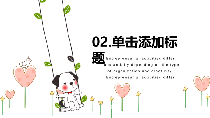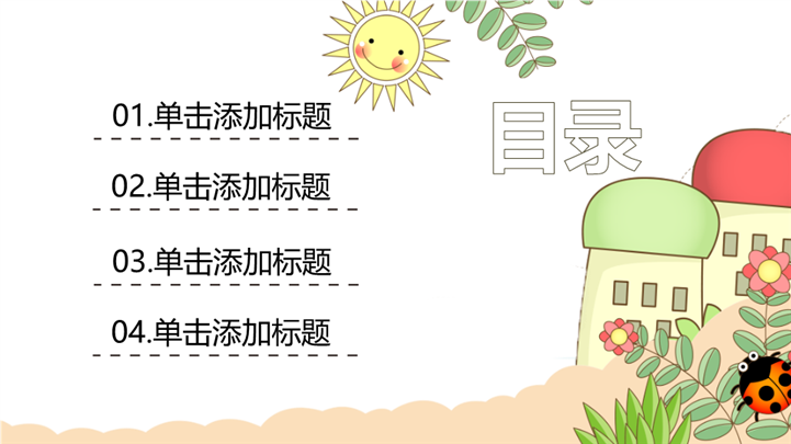 PPT简介: 清新卡通风格六一儿童节主题PPT模板,适用于六一儿童节相关主题设计应用。主体文字及图片可替换修改,文字修改均可直接点击文本框进行编辑,图片更改可选中图片后单击鼠标右键插入更换图片,也可根据自身需求增加和删除。本作品提供PPTX格式文件,转载请注明出处!