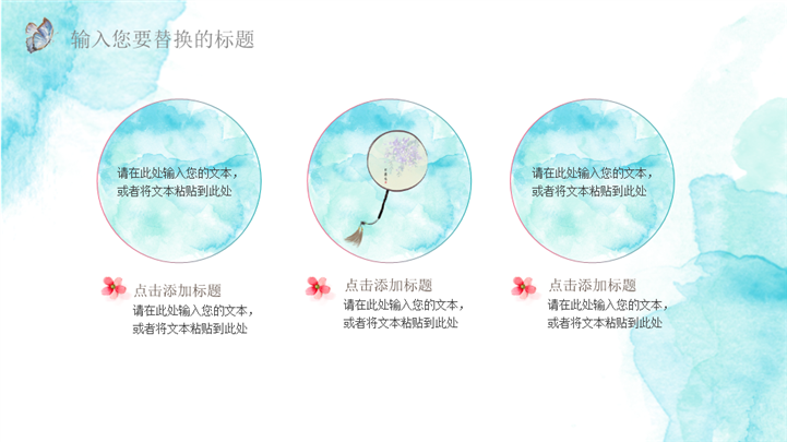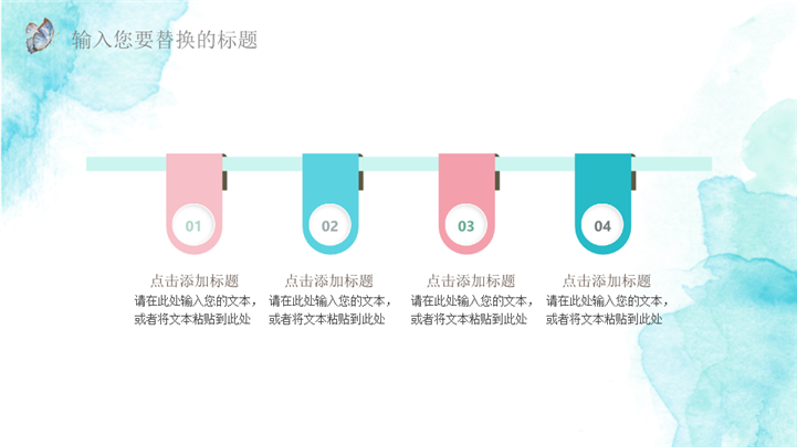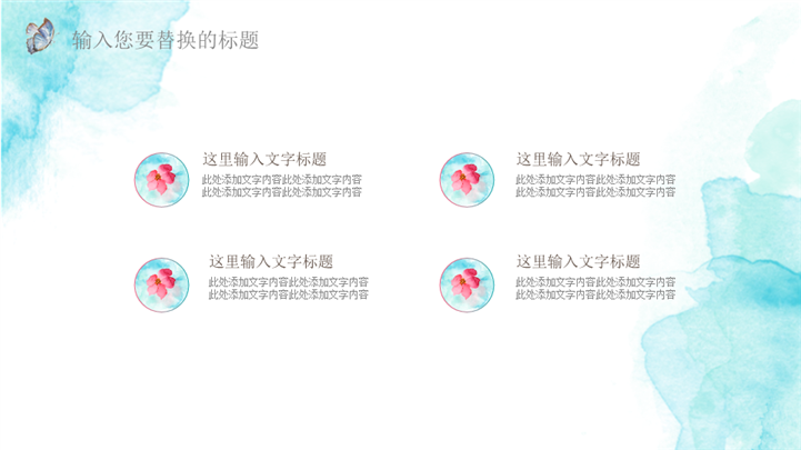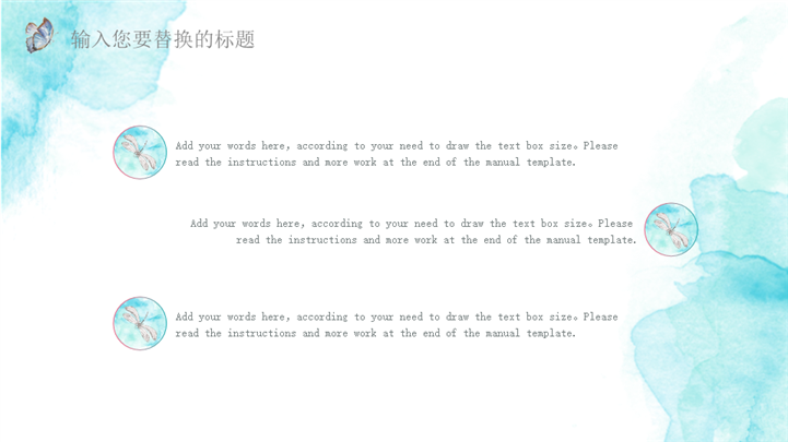 PPT简介: 清新水彩风夏日主题通用ppt模板,适用于工作复盘、月度总结、月度复盘、计划总结、商务总结、工作总结、总结汇报、商务汇报等相关主题设计应用。主体文字及图片可替换修改,文字修改均可直接点击文本框进行编辑,图片更改可选中图片后单击鼠标右键插入更换图片,也可根据自身需求增加和删除。本作品提供PPTX格式文件,转载请注明出处!