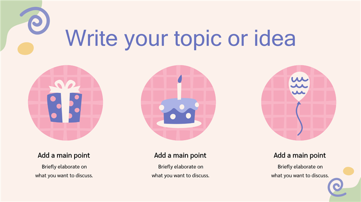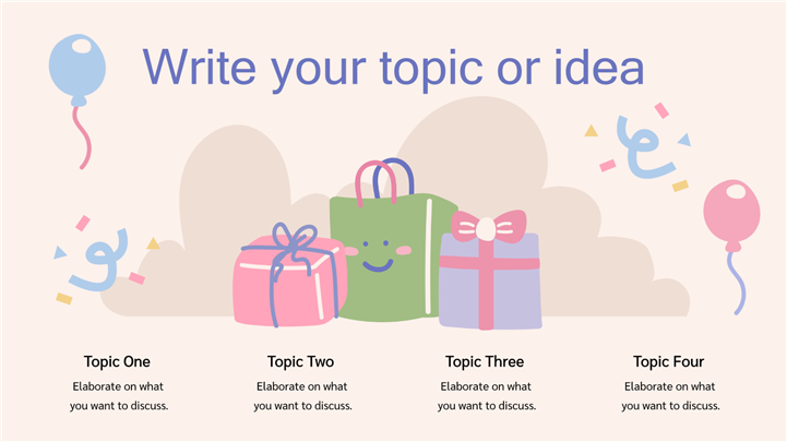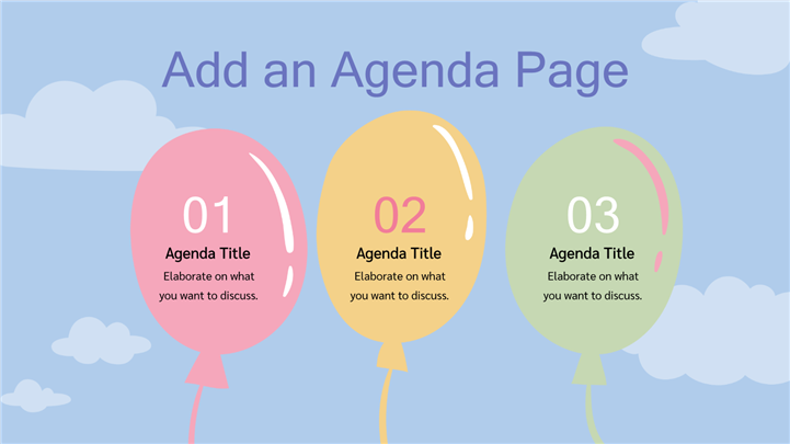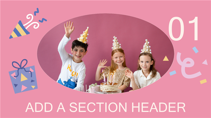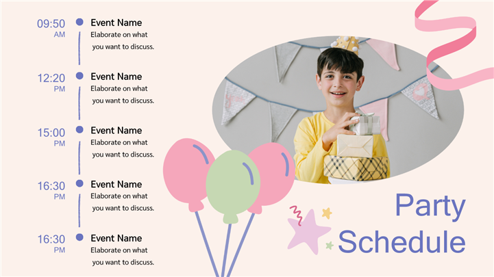 PPT简介: 可爱气球萌娃女孩生日派对策划ppt模板,适用于生日会、儿童生日会、生日会庆祝、祝你生日快乐、卡通生日会、生日会策划、女生生日会等相关主题设计应用。主体文字及图片可替换修改,文字修改均可直接点击文本框进行编辑,图片更改可选中图片后单击鼠标右键插入更换图片,也可根据自身需求增加和删除。本作品提供PPTX格式文件,转载请注明出处!