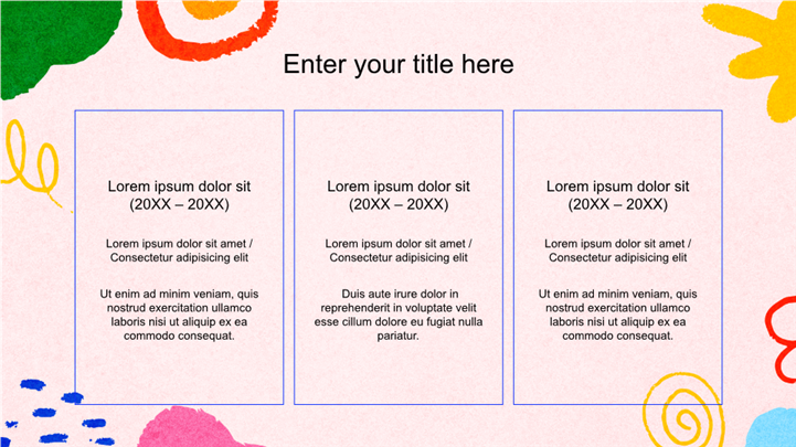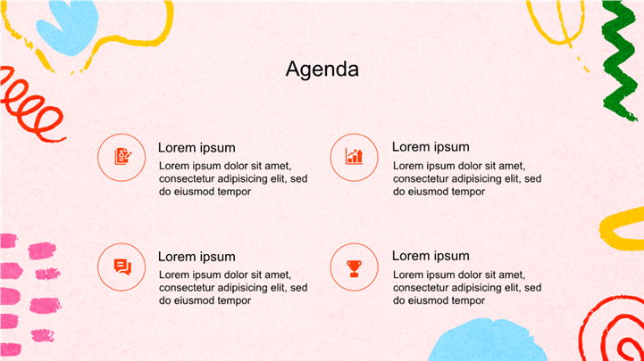 PPT简介: 手绘涂鸦波普艺术风创意项目展示PPT模板,适用于展示创意项目、艺术作品集、儿童教育或任何需要活泼、有趣氛围的主题等相关主题设计应用。主体文字及图片可替换修改,文字修改均可直接点击文本框进行编辑,图片更改可选中图片后单击鼠标右键插入更换图片,也可根据自身需求增加和删除。本作品提供PPTX格式文件,转载请注明出处!