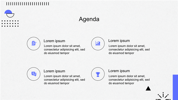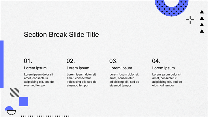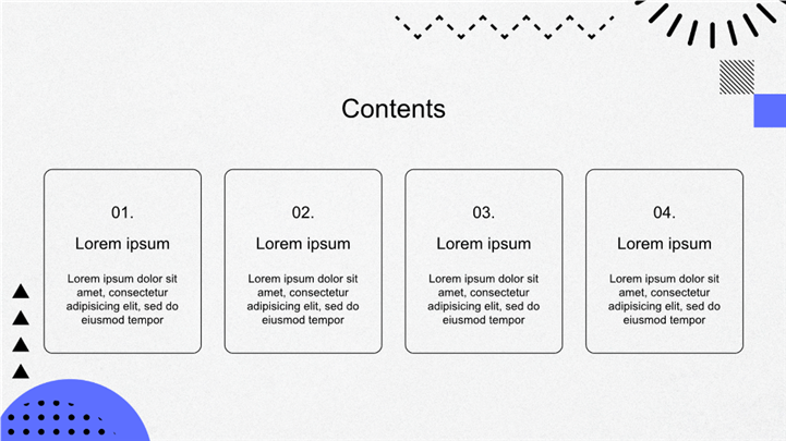 PPT简介: 趣味几何图形创意设计项目展示PPT模板,以几何图形和大胆的配色为主题,风格现代、活泼。适用于意项目展示、设计作品集、或者时尚、科技类的工作复盘、月度总结、月度复盘、计划总结、商务总结、工作总结、总结汇报、商务汇报等相关主题设计应用。主体文字及图片可替换修改,文字修改均可直接点击文本框进行编辑,图片更改可选中图片后单击鼠标右键插入更换图片,也可根据自身需求增加和删除。本作品提供PPTX格式文件,转载请注明出处!