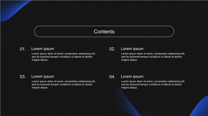 PPT简介: 酷炫未来感科技领域年度报告演示PPT模板,充满了未来感,以深色背景和流动的蓝色光影为主,适用于展示科技、数据、人工智能、前沿科学等相关的工作复盘、月度总结、月度复盘、计划总结、商务总结、工作总结、总结汇报、商务汇报等相关主题设计应用。主体文字及图片可替换修改,文字修改均可直接点击文本框进行编辑,图片更改可选中图片后单击鼠标右键插入更换图片,也可根据自身需求增加和删除。本作品提供PPTX格式文件,转载请注明出处!