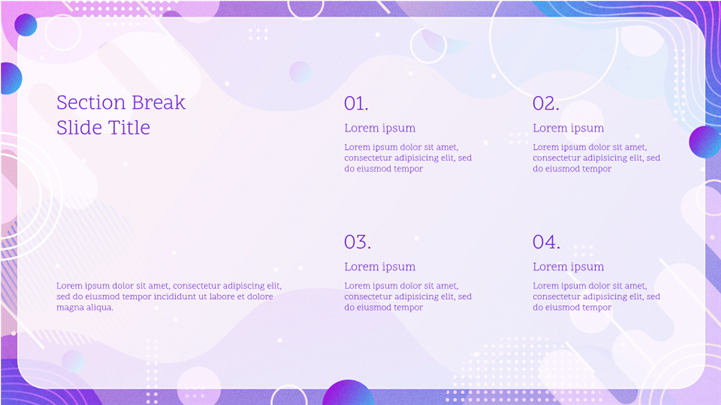 PPT简介: 未来感渐变抽象风未来科技趋势报告ppt模板,适用于未来科技趋势报告、人工智能(AI)项目、元宇宙(Metaverse)概念介绍、创新项目提案或任何需要展现前沿、创新与科技感、工作复盘、月度总结、月度复盘、计划总结、商务总结、工作总结、总结汇报、商务汇报等相关主题设计应用。主体文字及图片可替换修改,文字修改均可直接点击文本框进行编辑,图片更改可选中图片后单击鼠标右键插入更换图片,也可根据自身需求增加和删除。本作品提供PPTX格式文件,转载请注明出处!