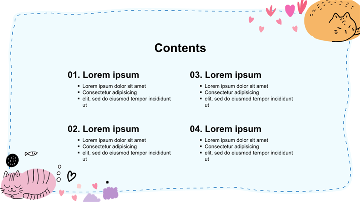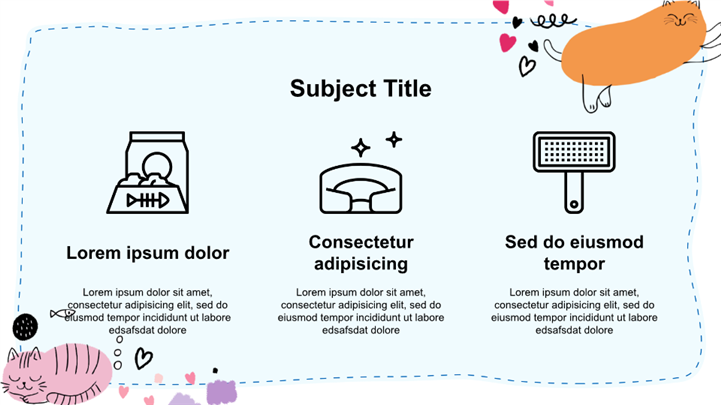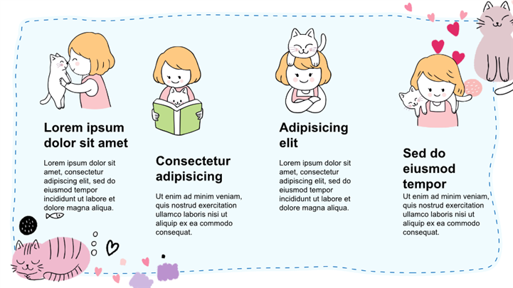 PPT简介: 可爱涂鸦风宠物关爱科普ppt模板,适用于营销宣传 (宠物店、猫咖、宠物用品)、教育培训 (宠物知识科普、亲子课件)、节日庆典 (动物保护日、猫咪主题活动)等相关主题设计应用。主体文字及图片可替换修改,文字修改均可直接点击文本框进行编辑,图片更改可选中图片后单击鼠标右键插入更换图片,也可根据自身需求增加和删除。本作品提供PPTX格式文件,转载请注明出处!