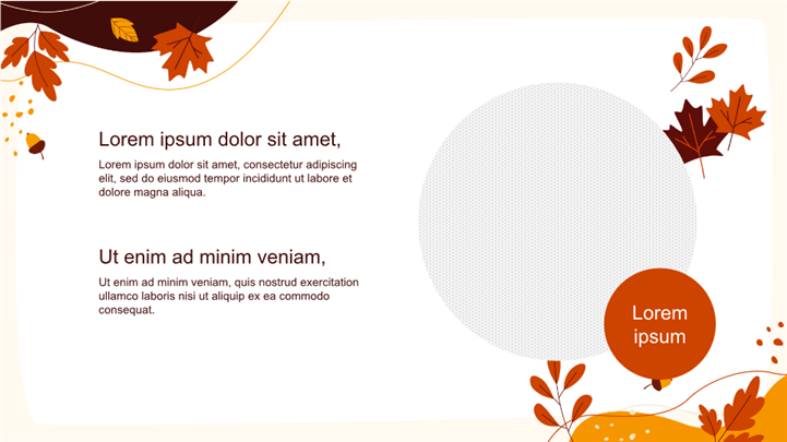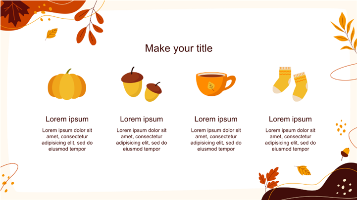PPT简介: 暖色流体枫叶秋季活动策划ppt模板,适用于节日庆典 (如秋季派对、感恩节聚会、丰收节)、营销宣传 (秋季活动邀请)、家长会 (秋季学期)等相关主题设计应用。主体文字及图片可替换修改,文字修改均可直接点击文本框进行编辑,图片更改可选中图片后单击鼠标右键插入更换图片,也可根据自身需求增加和删除。本作品提供PPTX格式文件,转载请注明出处!