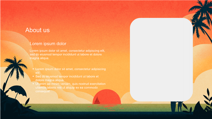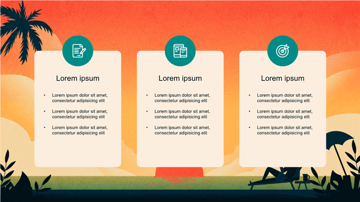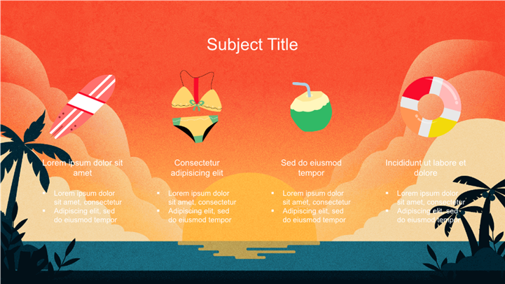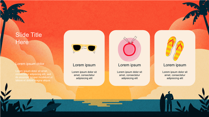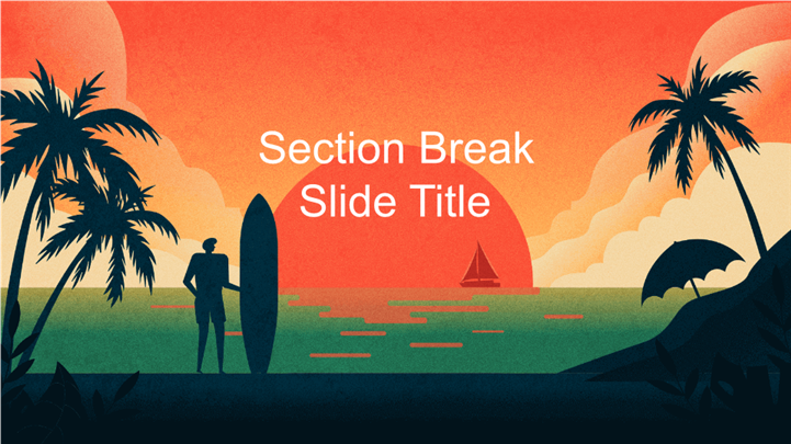 PPT简介: 复古插画风海滩旅行推广营销宣传ppt模板,适用于营销宣传 (如旅行社推广、夏日活动、冲浪品牌)、节日庆典 (夏日派对、音乐节)、自我介绍 (旅行博主)等相关主题设计应用。主体文字及图片可替换修改,文字修改均可直接点击文本框进行编辑,图片更改可选中图片后单击鼠标右键插入更换图片,也可根据自身需求增加和删除。本作品提供PPTX格式文件,转载请注明出处!