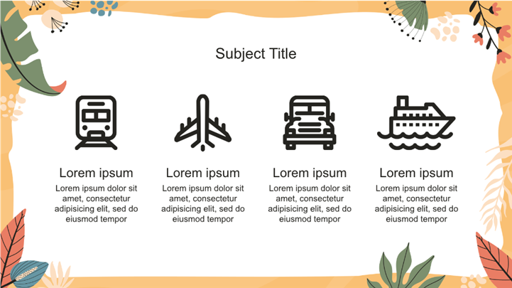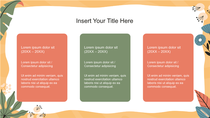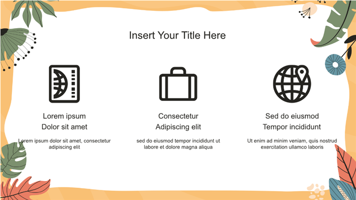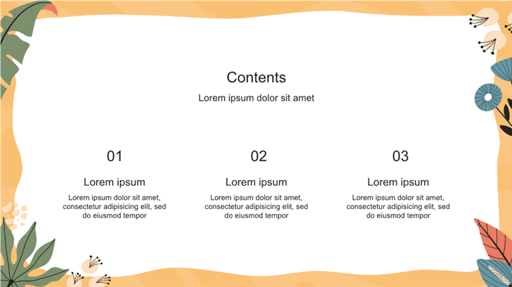 PPT简介: 暖色植物插画风秋季旅行策划ppt模板,适用于营销宣传 (旅行社推广、秋日活动策划、海岛度假)、节日庆典 (秋日派对)等相关主题设计应用。主体文字及图片可替换修改,文字修改均可直接点击文本框进行编辑,图片更改可选中图片后单击鼠标右键插入更换图片,也可根据自身需求增加和删除。本作品提供PPTX格式文件,转载请注明出处!
