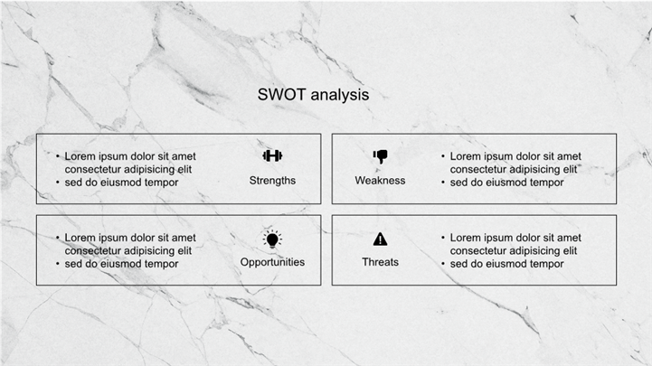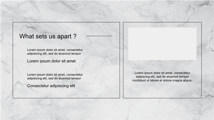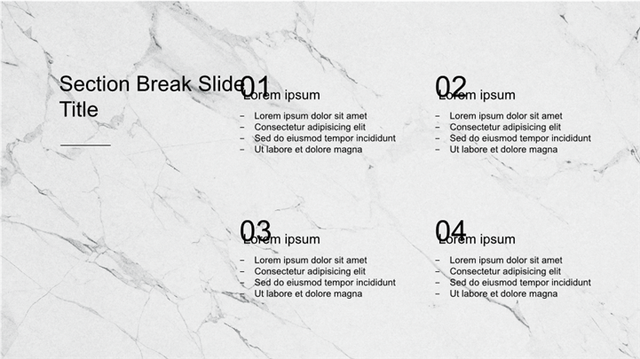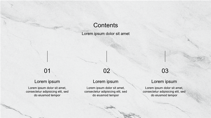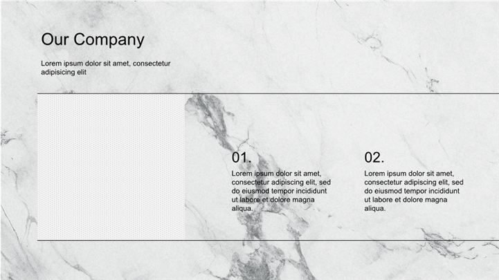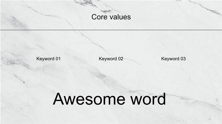 PPT简介: 极简奢华风大理石纹理公司品牌介绍PPT模板,以大理石纹理为主题,风格简洁高级,适用于建筑设计、家居装饰、时尚美妆、艺术品鉴等领域的内容以及工作复盘、月度总结、月度复盘、计划总结、商务总结、工作总结、总结汇报、商务汇报等相关主题设计应用。主体文字及图片可替换修改,文字修改均可直接点击文本框进行编辑,图片更改可选中图片后单击鼠标右键插入更换图片,也可根据自身需求增加和删除。本作品提供PPTX格式文件,转载请注明出处!