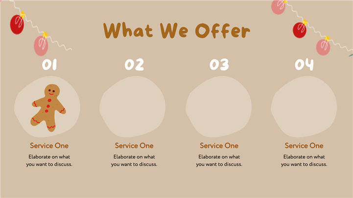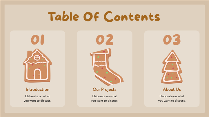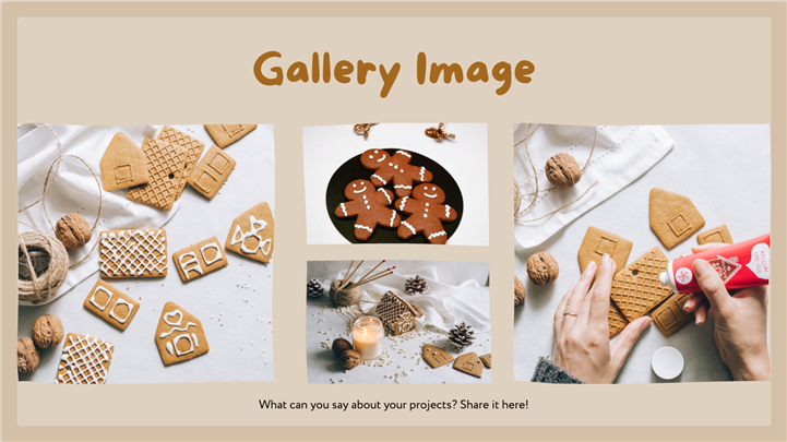 PPT简介: 圣诞节姜饼屋教程烘培教学ppt模板,适用于餐饮美食 (核心匹配:烘焙教程、甜品制作)、教育培训 (手工坊、烘焙课)、节日庆典 (圣诞节活动)等相关主题设计应用。主体文字及图片可替换修改,文字修改均可直接点击文本框进行编辑,图片更改可选中图片后单击鼠标右键插入更换图片,也可根据自身需求增加和删除。本作品提供PPTX格式文件,转载请注明出处!