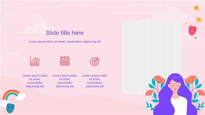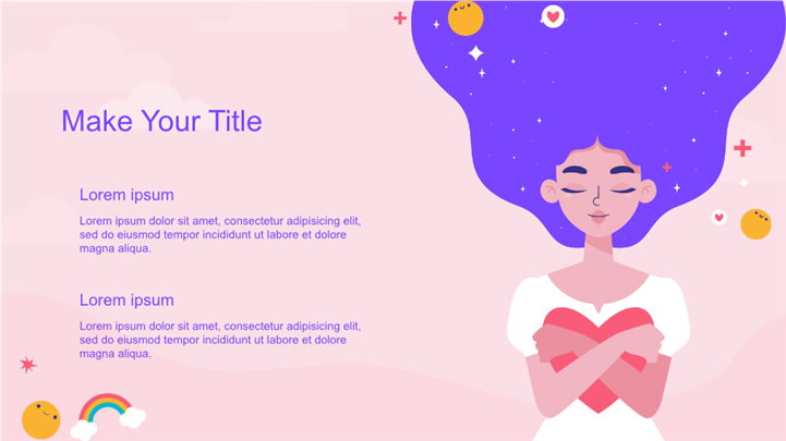 PPT简介: 治愈系插画风心理健康科普ppt模板,适用于医疗健康 (核心匹配:心理健康、情绪管理)、教育培训 (主题班会、健康课件)、自我介绍 (个人成长)等相关主题设计应用。主体文字及图片可替换修改,文字修改均可直接点击文本框进行编辑,图片更改可选中图片后单击鼠标右键插入更换图片,也可根据自身需求增加和删除。本作品提供PPTX格式文件,转载请注明出处!
