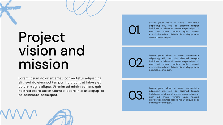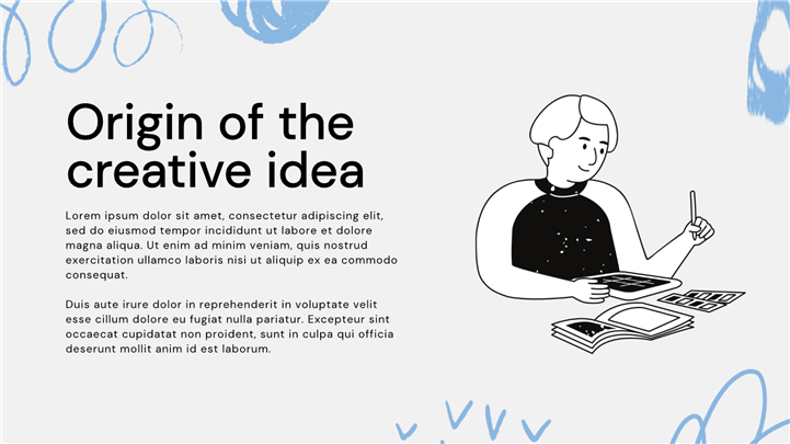 PPT简介: 极简创意涂鸦商务风项目报告ppt模板,适用于营销宣传 (创意提案、项目策划)、工作总结 (项目报告)、教育培训 (创意工作坊)、自我介绍 (作品集)、工作复盘、月度总结、月度复盘、计划总结、商务总结、总结汇报、商务汇报等相关主题设计应用。主体文字及图片可替换修改,文字修改均可直接点击文本框进行编辑,图片更改可选中图片后单击鼠标右键插入更换图片,也可根据自身需求增加和删除。本作品提供PPTX格式文件,转载请注明出处!