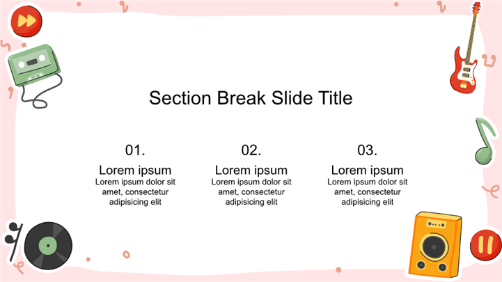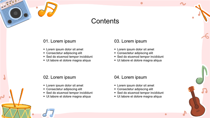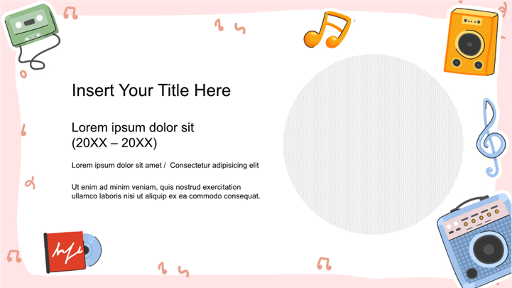 PPT简介: 粉色可爱插画风音乐主题班会ppt模板,适用于医疗健康 (核心匹配:音乐治疗、心理健康、情绪管理)、教育培训 (音乐课件、艺术启蒙)等相关主题设计应用。主体文字及图片可替换修改,文字修改均可直接点击文本框进行编辑,图片更改可选中图片后单击鼠标右键插入更换图片,也可根据自身需求增加和删除。本作品提供PPTX格式文件,转载请注明出处!