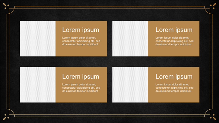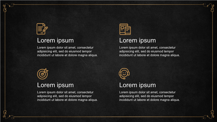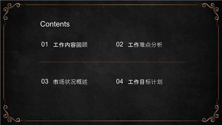 PPT简介: 极简复古黑金框年终总结汇报ppt模板,适用于工作总结(核心)、年终汇报、述职报告、项目复盘、商务计划书、工作复盘、月度总结、月度复盘、计划总结、商务总结、工作总结、总结汇报、商务汇报等相关主题设计应用。主体文字及图片可替换修改,文字修改均可直接点击文本框进行编辑,图片更改可选中图片后单击鼠标右键插入更换图片,也可根据自身需求增加和删除。本作品提供PPTX格式文件,转载请注明出处!