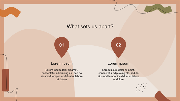 PPT简介: 大地色系抽象风时尚品牌策划ppt模板,适用于营销宣传 (核心匹配:品牌策划、营销提案、美妆/生活方式)、自我介绍 (作品集)、工作总结等相关主题设计应用。主体文字及图片可替换修改,文字修改均可直接点击文本框进行编辑,图片更改可选中图片后单击鼠标右键插入更换图片,也可根据自身需求增加和删除。本作品提供PPTX格式文件,转载请注明出处!