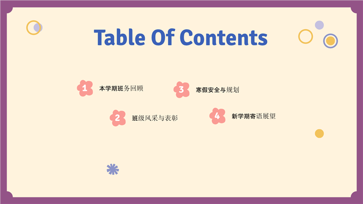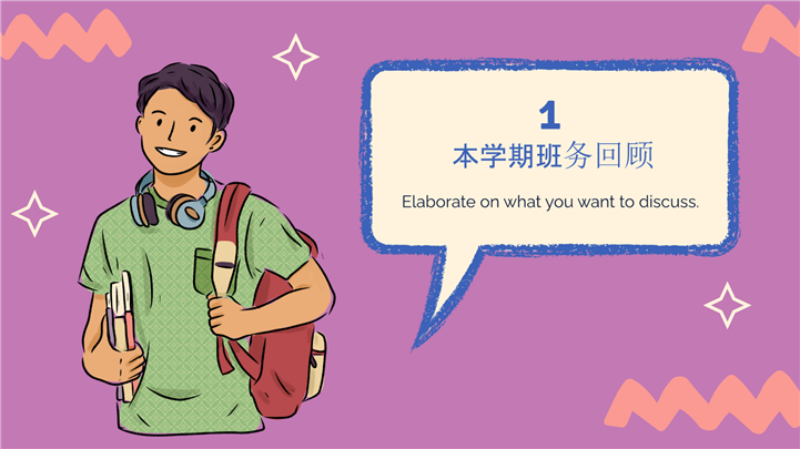 PPT简介: 紫色卡通中小学期末总结主题班会PPT模板,这款紫色卡通风中小学颁奖典礼PPT模板专为班级活动与期末表彰设计。模板内含手绘奖杯、荣誉证书及勋章素材,配色采用活力紫与暖黄,视觉活泼。内置获奖名单公布、颁奖流程及教师寄语版式,非常适合校园竞赛及结业班会使用。主体文字及图片可替换修改,文字修改均可直接点击文本框进行编辑,图片更改可选中图片后单击鼠标右键插入更换图片,也可根据自身需求增加和删除。本作品提供PPTX格式文件,转载请注明出处!