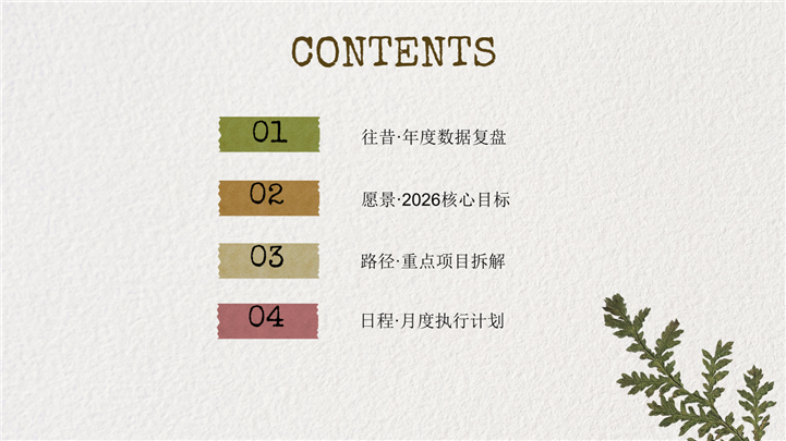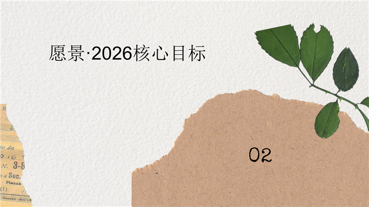 PPT简介: 复古怀旧剪贴簿风2026新年工作计划PPT模板,这款复古牛皮纸剪贴簿风2026新年工作计划PPT模板,打破传统商务风格,用创意手账的形式记录您的职业愿景。内含撕纸风OKR目标卡、年度时间轴规划、月度重点事项及SWOT分析版式。设计充满怀旧质感与艺术气息,非常适合设计师、媒体人及自由职业者制定年度规划与个人复盘。主体文字及图片可替换修改,文字修改均可直接点击文本框进行编辑,图片更改可选中图片后单击鼠标右键插入更换图片,也可根据自身需求增加和删除。本作品提供PPTX格式文件,转载请注明出处!