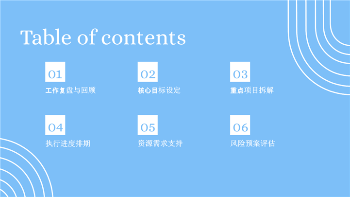 PPT简介: 清新蓝白极简风企业工作计划ppt模板,适用于工作复盘、月度总结、月度复盘、计划总结、商务总结、工作总结、总结汇报、商务汇报等相关主题设计应用。主体文字及图片可替换修改,文字修改均可直接点击文本框进行编辑,图片更改可选中图片后单击鼠标右键插入更换图片,也可根据自身需求增加和删除。本作品提供PPTX格式文件,转载请注明出处!