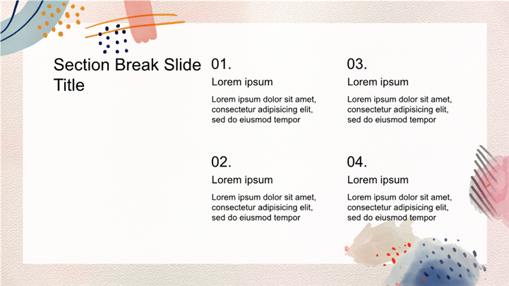 PPT简介: 清新水彩涂鸦风心理健康课件ppt模板,适用于工自我介绍 (核心匹配:设计师/插画师作品集)、教育培训 (艺术课件、创意工坊)、营销宣传 (创意品牌、美妆)等相关主题设计应用。主体文字及图片可替换修改,文字修改均可直接点击文本框进行编辑,图片更改可选中图片后单击鼠标右键插入更换图片,也可根据自身需求增加和删除。本作品提供PPTX格式文件,转载请注明出处!