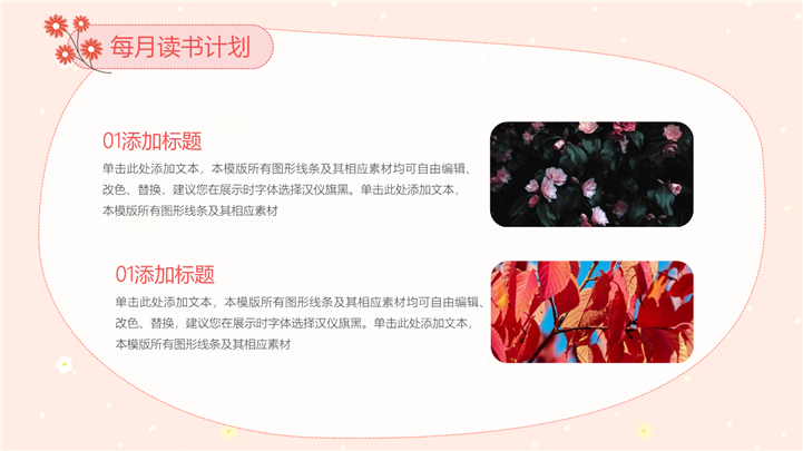 PPT简介: 可爱卡通插画风亲子读书日活动ppt模板,适用于家长会课件、幼儿园亲子阅读活动、世界读书日主题班会 、校园阅读推广等相关主题设计应用。主体文字及图片可替换修改,文字修改均可直接点击文本框进行编辑,图片更改可选中图片后单击鼠标右键插入更换图片,也可根据自身需求增加和删除。本作品提供PPTX格式文件,转载请注明出处!