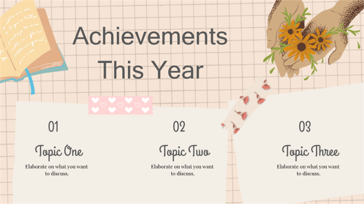 PPT简介: 粉色网格手账风美好生活记录PPT模板,这款粉色网格手账风格PPT模板,将DIY拼贴艺术带入演示文稿。界面充满相机、花卉、胶带与剪刀等生活元素,营造出浓厚的INS风氛围感。模板内含照片展示墙、旅行vlog脚本、手工制作教程及心情日记版式,非常适合摄影社团、美术手工课及个人生活记录。