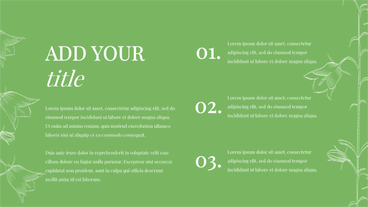 PPT简介: 清新绿色手绘天然有机护肤品牌营销ppt模板,适用于天然有机护肤**、植物精油香氛、高端SPA疗愈及花艺园艺等强调“纯净、自然、环保”理念的行业;它不仅适用于品牌形象路演与新品发布(特别是主打草本/纯素成分的产品),也非常适合用于成分科普培训、绿色生活方式提案以及节日营销策划,能通过视觉上的“呼吸感”有效传递出安全、温和与高级的品牌信任感。主体文字及图片可替换修改,文字修改均可直接点击文本框进行编辑,图片更改可选中图片后单击鼠标右键插入更换图片,也可根据自身需求增加和删除。本作品提供PPTX格式文件,转载请注明出处!