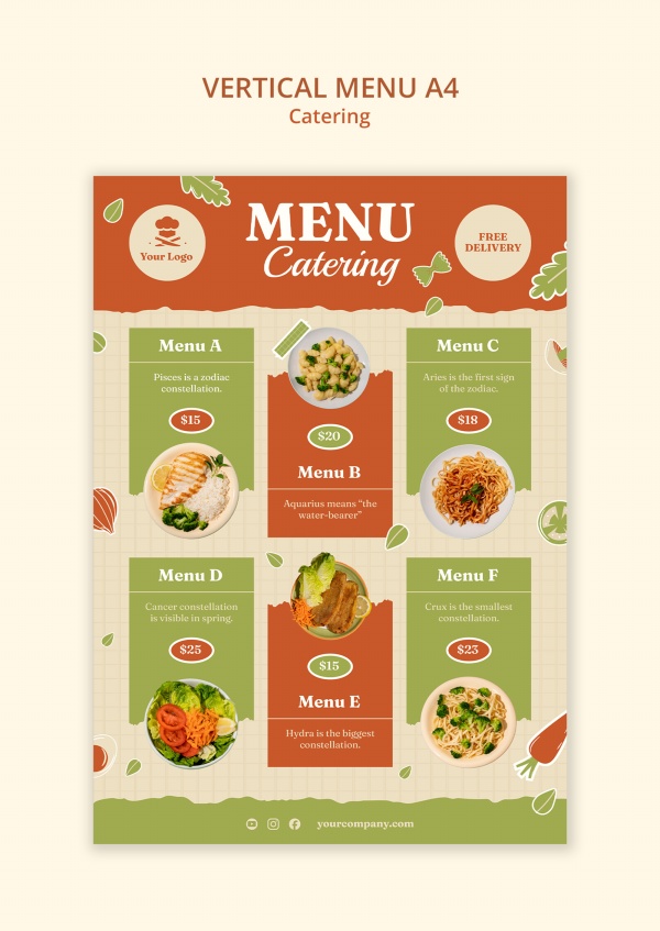 餐厅美食价目菜单A4模板设计适用于餐饮美食价目表设计