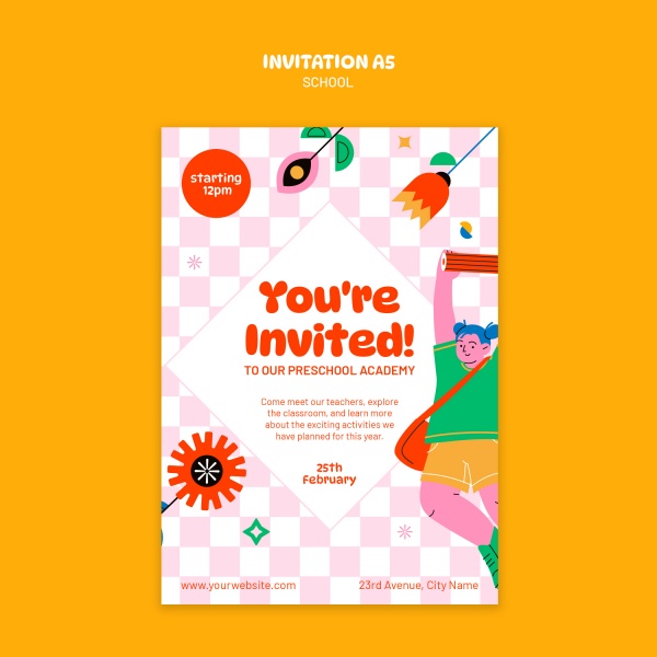 开学季主题插画风格邀请模板A5适用于开学季主题邀请模板设计