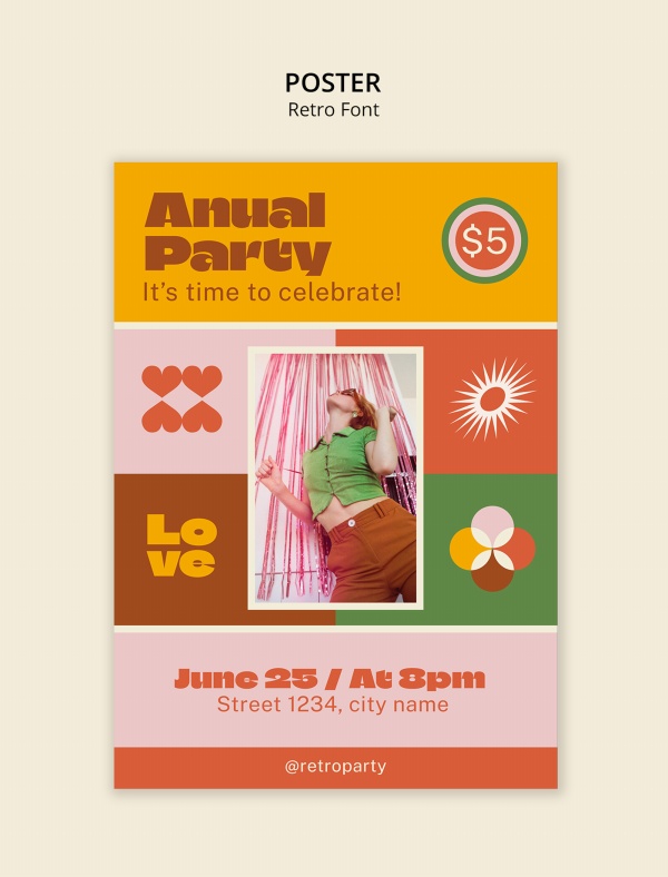 复古色彩风格派对海报设计适用于复古派对海报设计