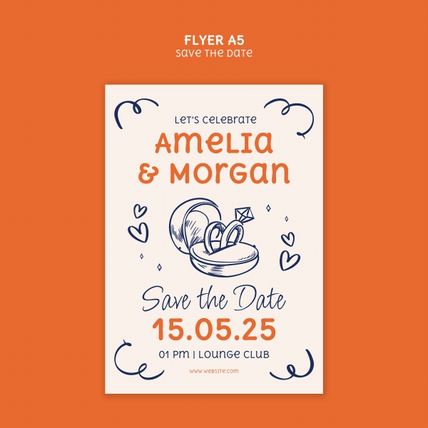 手绘风格婚礼邀请传单A5模板适用于婚礼邀请传单设计