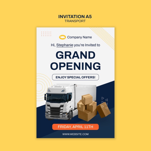 本作品提供物流运输公司开业邀请传单设计的图片会员免费下载,格式为PSD,文件大小为2.2M;
