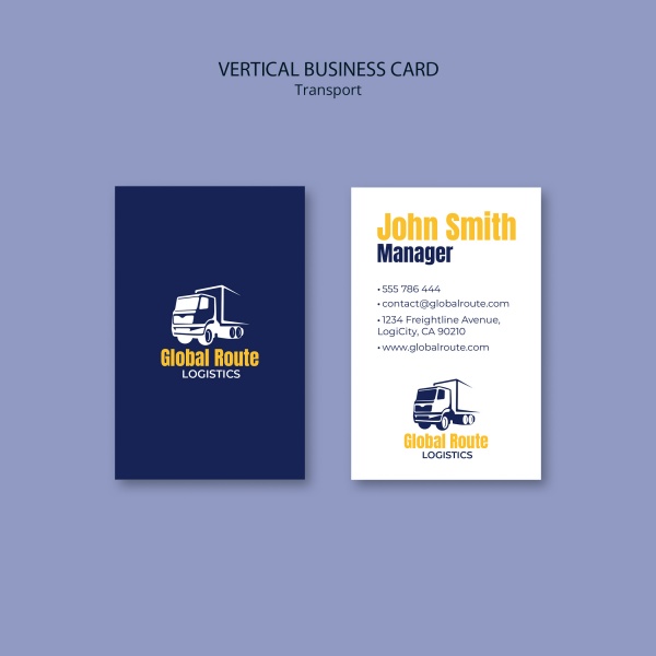 物流运输竖版商务名片PSD素材适用于物流运输名片模板设计