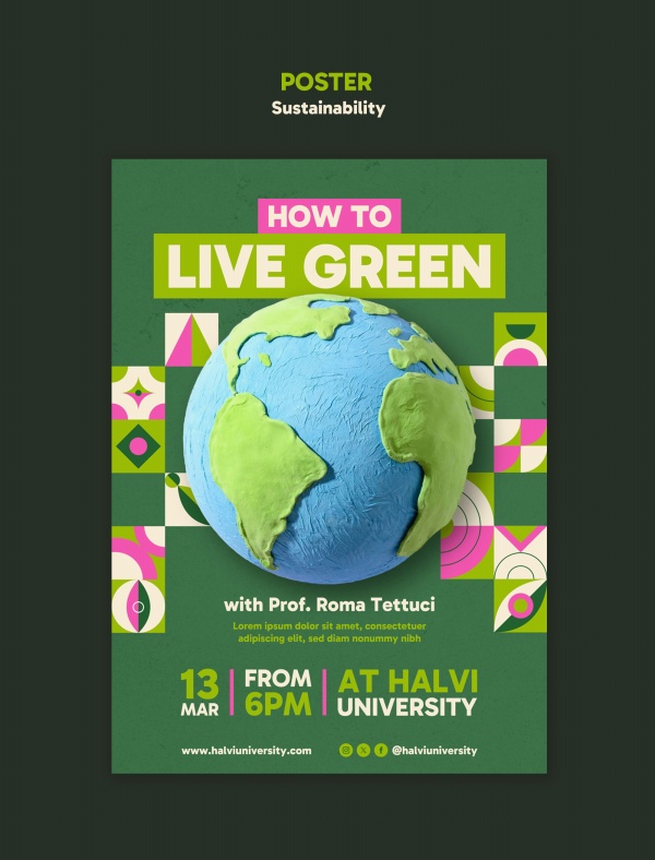 黏土风格保护地球主题海报PSD模板适用于保护地球主图海报模板设计
