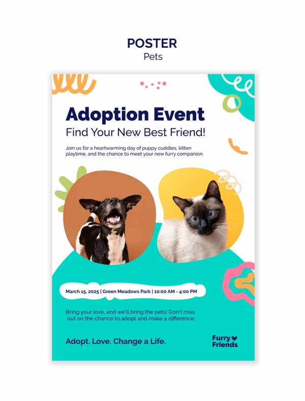 宠物收养宣传海报PSD模板设计适用于宠物护理海报设计