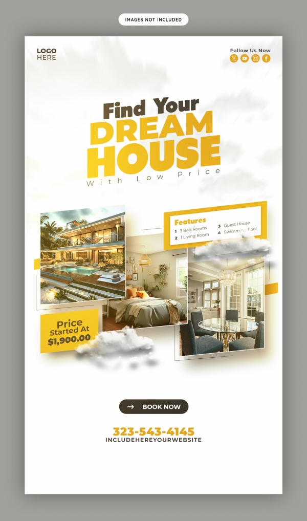 房屋销售中介竖版海报PSD模板适用于房屋地产海报设计