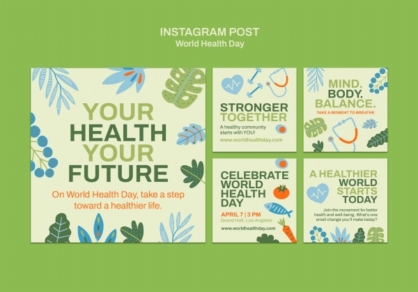 小清新风格世界健康日INS模板设计适用于世界健康日INS模板设计