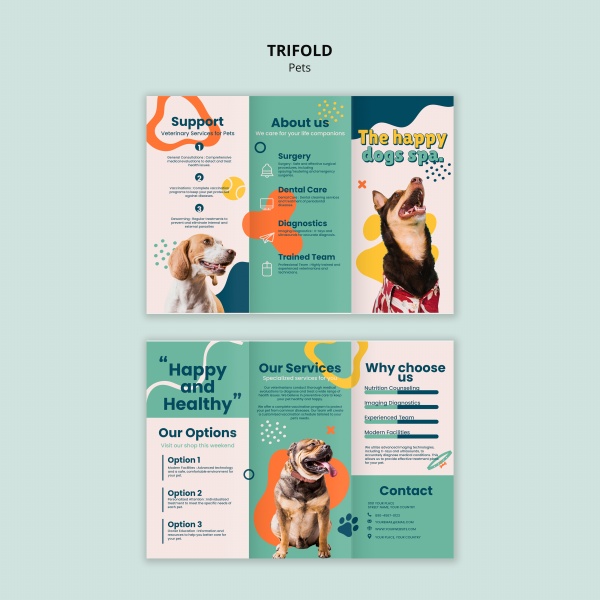 宠物店宣传三折页正反面模板适用于宠物店三折页设计