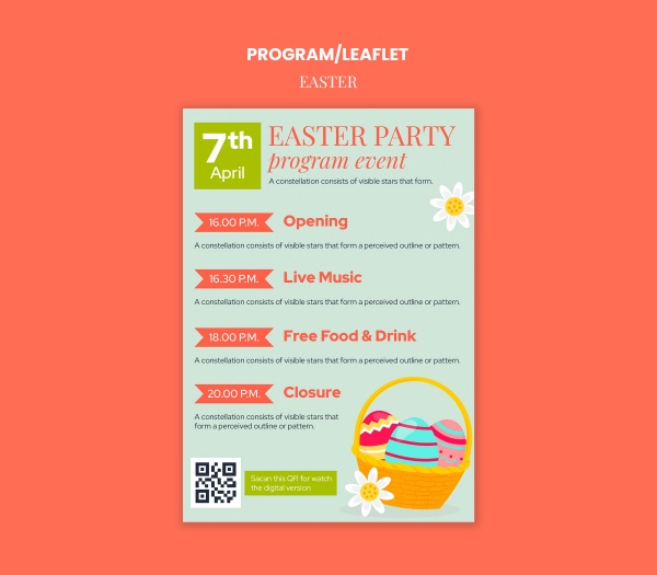 复活节派对活动时间表PSD素材适用于复活节派对活动使劲儿